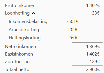 In de afbeelding hierboven was te zien dat de 1e schijf tot 2.002 euro per maand loopt. Over dat bedrag moet 100% belasting worden betaald.