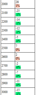 Er ligt uiteraard een tabel onder de grafiek. Deze is omvangrijk, een gedeeltelijke afdruk hiervan: